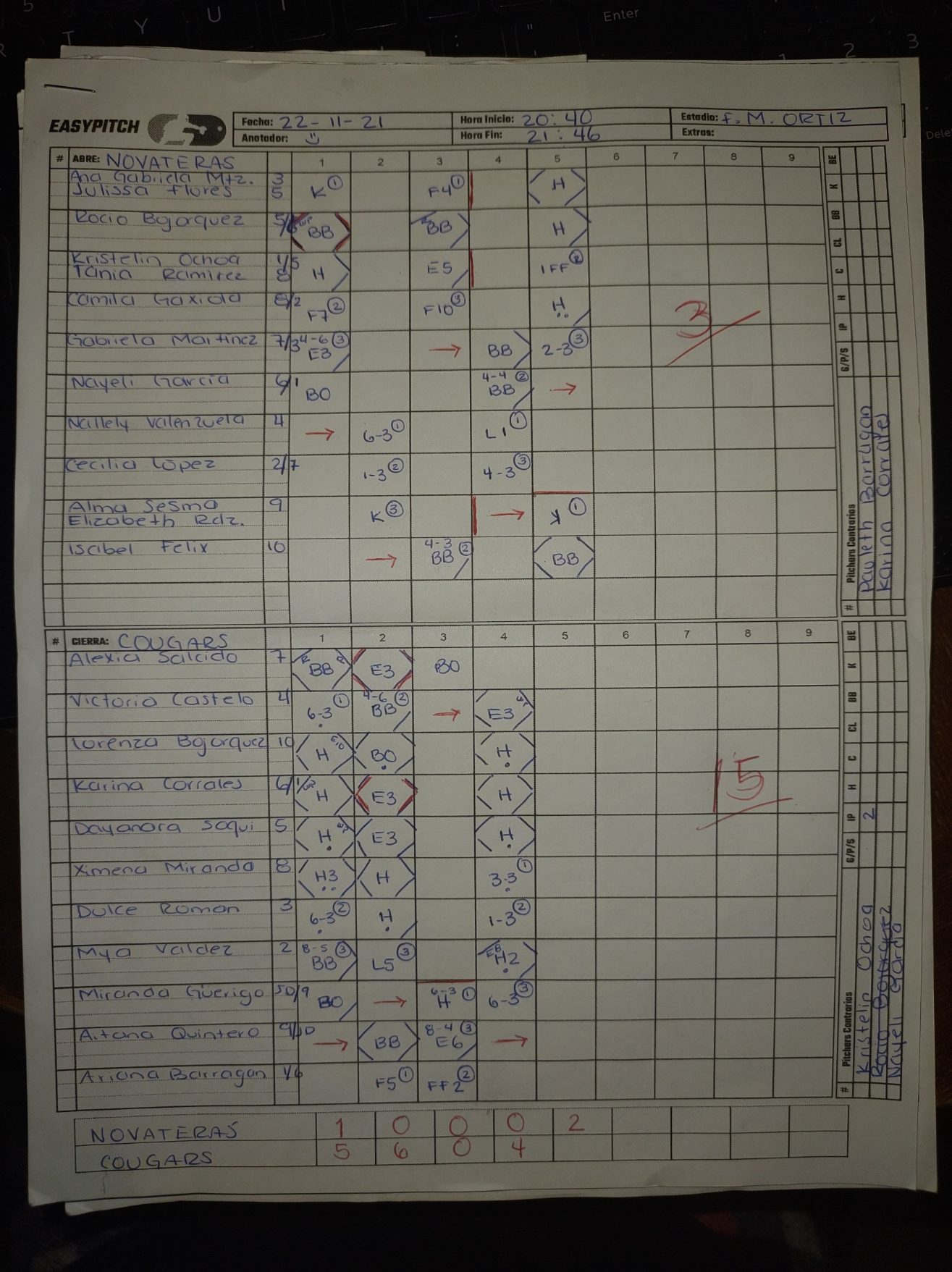| Arianna Pauleth Ortiz Barragan | Pitcher | 2 | 2 | 0 | 0 | 0 | 0 | 0 | 0 | 0 | 0 | 0 | 0 | 4 | 1 | 1 | 0 | 5 | 2 | 0 | 1 | 0 |