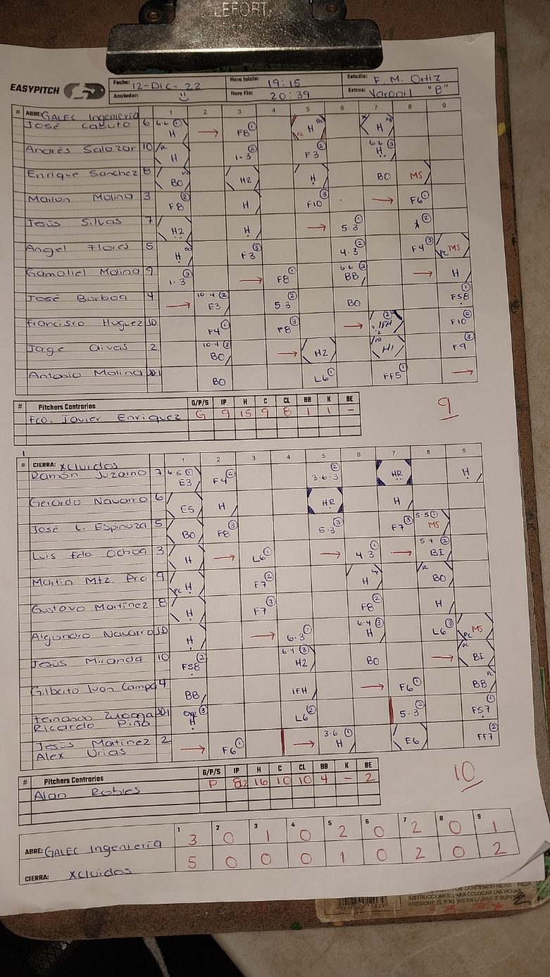 | Francisco Javier Enriquez | Pitcher | 0 | 0 | 0 | 0 | 0 | 0 | 0 | 0 | 0 | 0 | 0 | 0 | 9 | 15 | 9 | 0 | 1 | 1 | 0 | 1 | 0 |