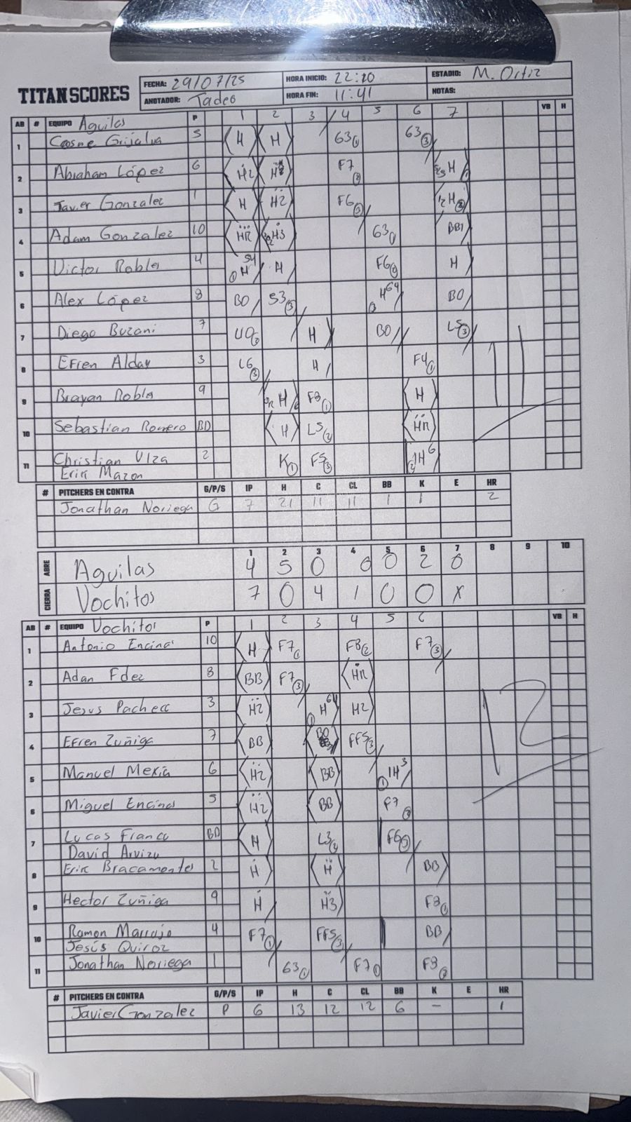 Jugador Position T TL C H RBI H2 H3 HR BR BB K E IP H CP CL BB K HR Ganador Perdedor