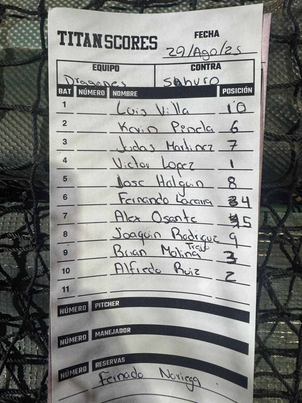 Position | T | TL | C | H | RBI | H2 | H3 | HR | BR | BB | K | E | IP | H | CP | CL | BB | K | HR | Ganador | Perdedor |