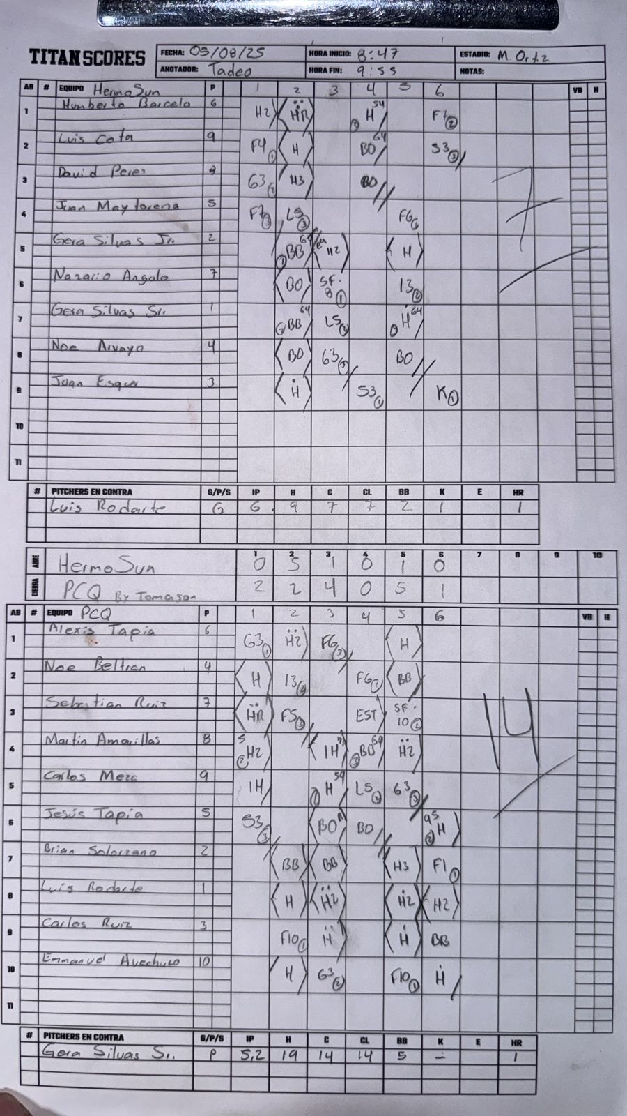 Luis Gerardo Silvas Olea SR | Pitcher | 3 | 2 | 0 | 1 | 0 | 0 | 0 | 0 | 0 | 1 | 0 | 0 | 5.2 | 19 | 14 | 14 | 5 | 0 | 1 | 0 | 1 |