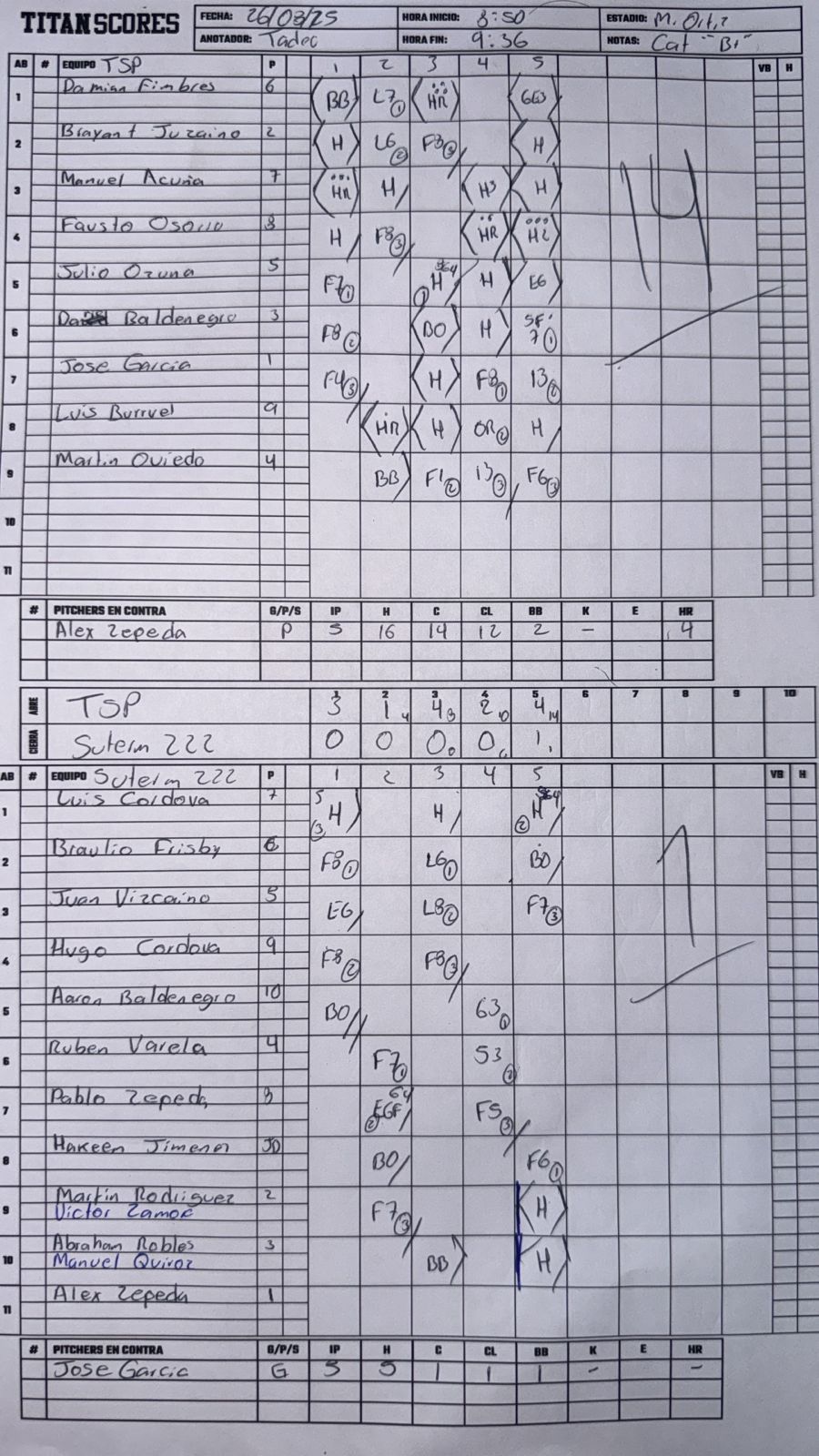 Jose Maria Garcia Guardado | Pitcher | 4 | 4 | 1 | 1 | 0 | 0 | 0 | 0 | 0 | 0 | 0 | 0 | 5 | 5 | 1 | 1 | 1 | 0 | 0 | 1 | 0 |