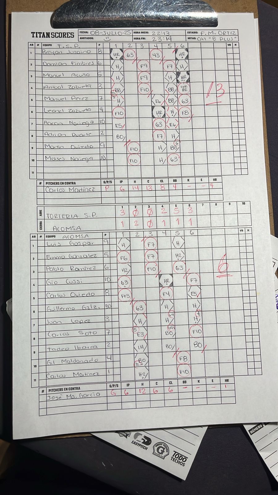 Jugador Position T TL C H RBI H2 H3 HR BR BB K E IP H CP CL BB K HR Ganador Perdedor