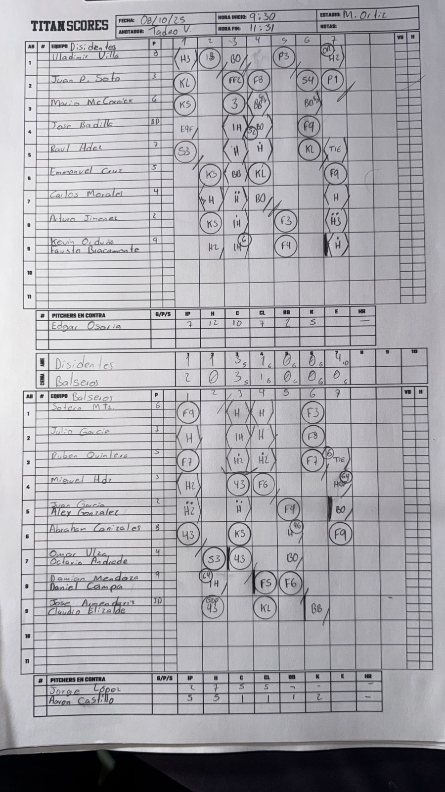 Jugador Position T TL C H RBI H2 H3 HR BR BB K E IP H CP CL BB K HR Ganador Perdedor