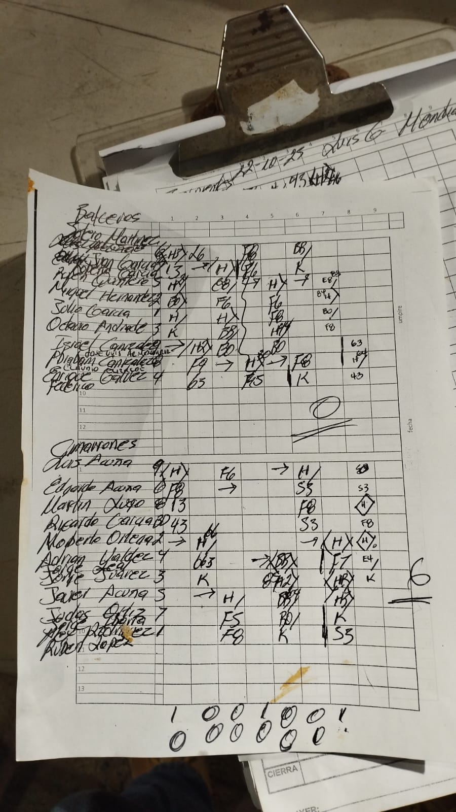 Jugador Position T TL C H RBI H2 H3 HR BR BB K E IP H CP CL BB K HR Ganador Perdedor