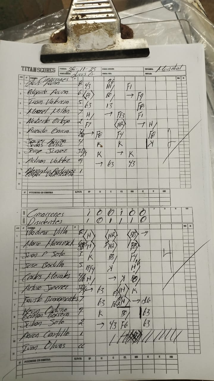 Jugador Position T TL C H RBI H2 H3 HR BR BB K E IP H CP CL BB K HR Ganador Perdedor