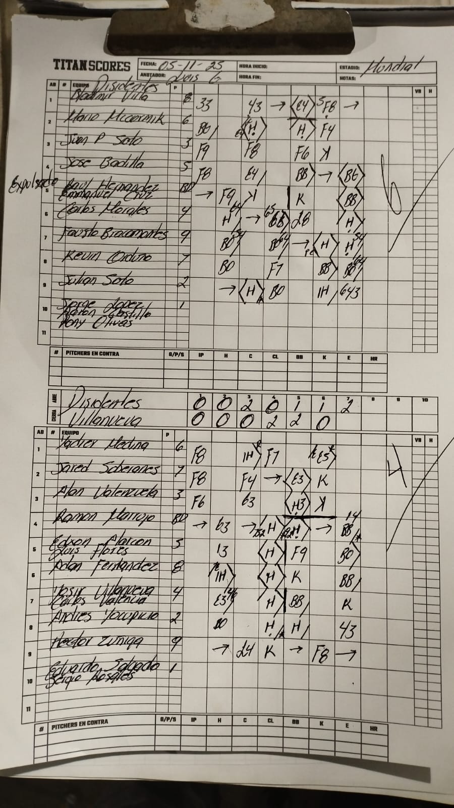 Jugador Position T TL C H RBI H2 H3 HR BR BB K E IP H CP CL BB K HR Ganador Perdedor