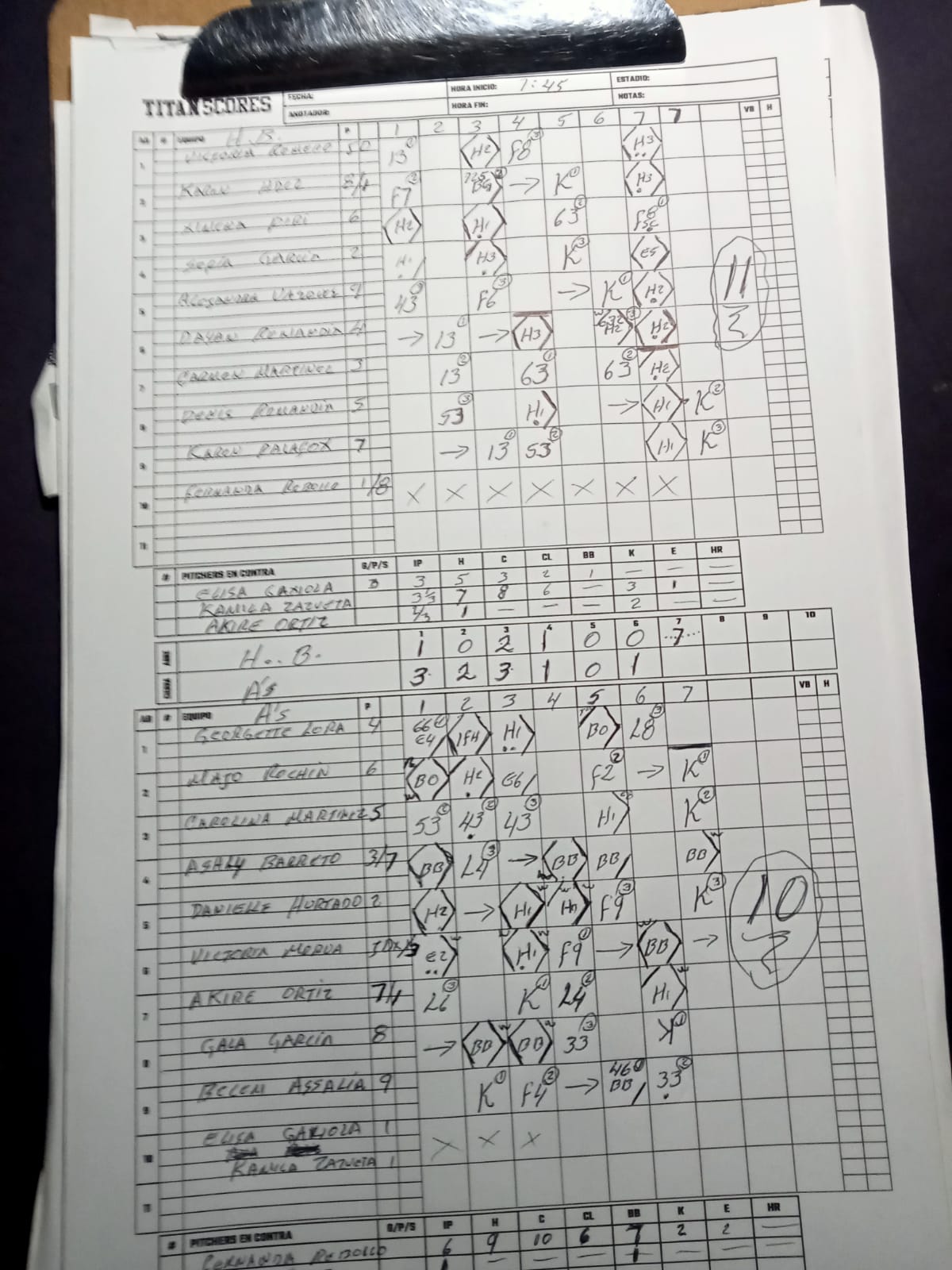 | Karen Hernandez | Pitcher | 4 | 3 | 1 | 1 | 1 | 0 | 1 | 0 | 0 | 1 | 1 | 0 | 1 | 0 | 0 | 0 | 1 | 3 | 0 | 0 | 0 |
