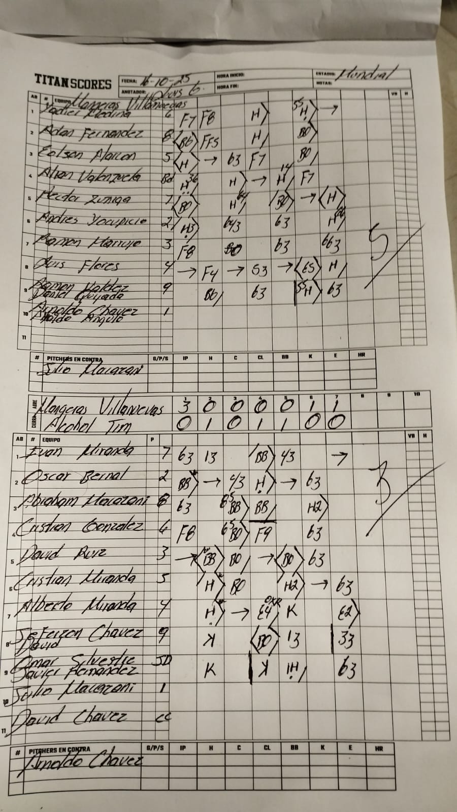 | Jugador | Position | T | TL | C | H | RBI | H2 | H3 | HR | BR | BB | K | E | IP | H | CP | CL | BB | K | HR | Ganador | Perdedor |