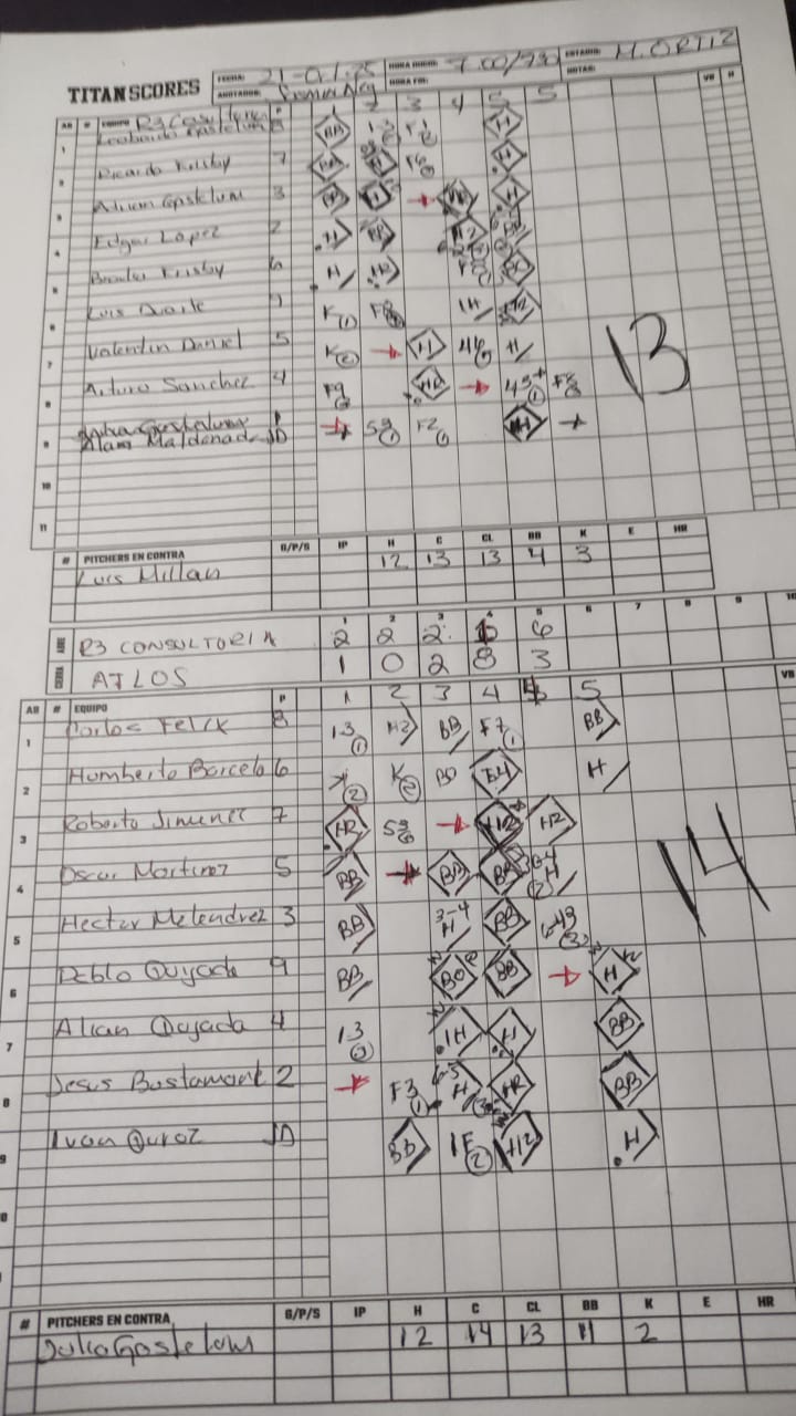 | Jugador | Position | T | TL | C | H | RBI | H2 | H3 | HR | BR | BB | K | E | IP | H | CP | CL | BB | K | HR | Ganador | Perdedor |