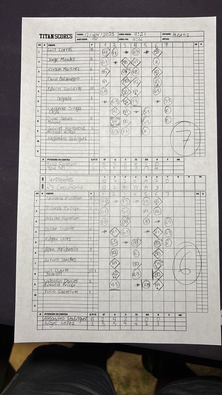 Jugador Position T TL C H RBI H2 H3 HR BR BB K E IP H CP CL BB K HR Ganador Perdedor