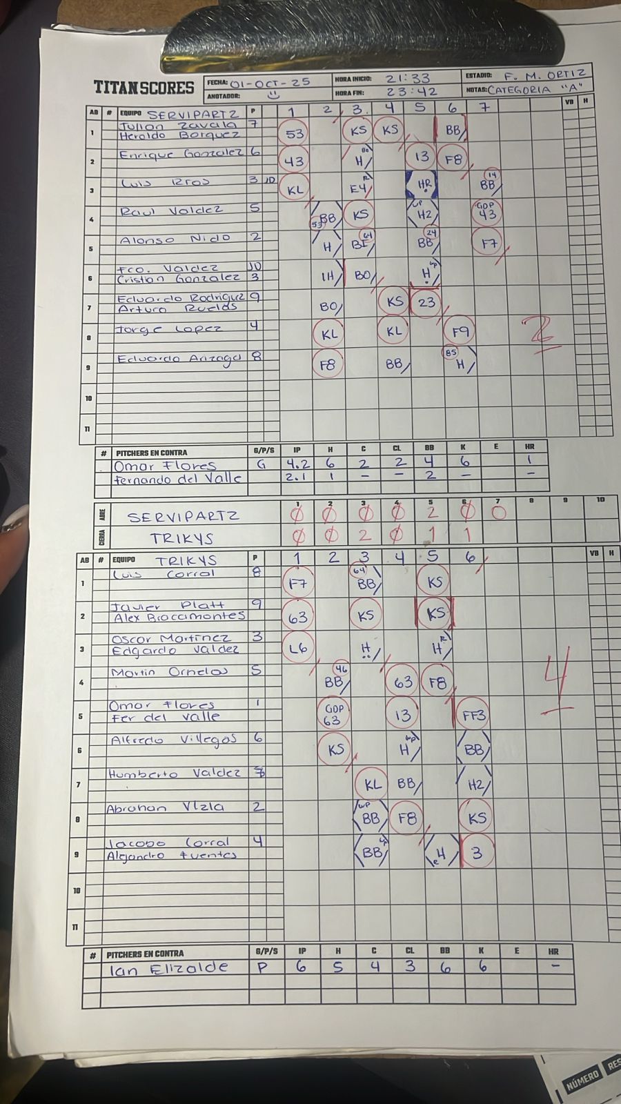 | Omar Ezequiel Flores Del Valle | Pitcher | 2 | 2 | 0 | 0 | 0 | 0 | 0 | 0 | 0 | 0 | 0 | 0 | 4.2 | 6 | 2 | 2 | 4 | 6 | 1 | 1 | 0 |