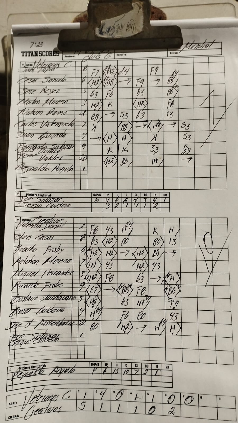 | VETERANOS DEL COBACH | 1 | 4 | 0 | 1 | 1 | 0 | 0 | 7 |